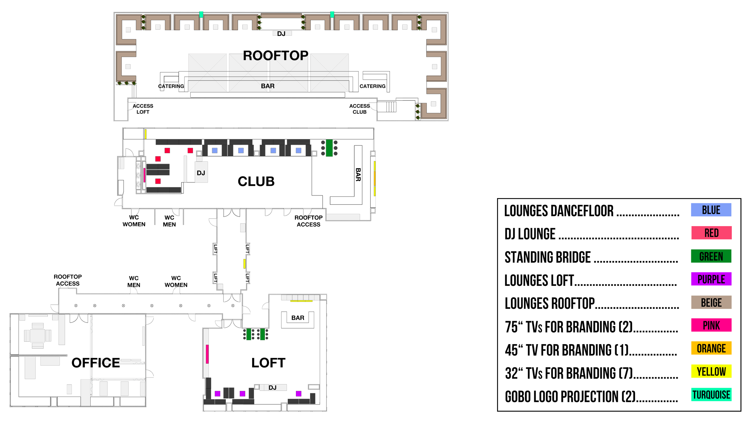 Ob stilvolle Firmenfeier, aufmerksamkeitsstarkes PR-Event oder private Veranstaltung – unsere Full-Service-Location auf mehreren Ebenen schafft den perfekten Rahmen für unvergessliche Erlebnisse. Die Location-Komposition aus Rooftop, Loft, Club und Office bietet für jedes Format das passende Setting – modern, flexibel und mit einem der beeindruckendsten Panoramablicke der Stadt, von Sonnenuntergang bis Sonnenaufgang.